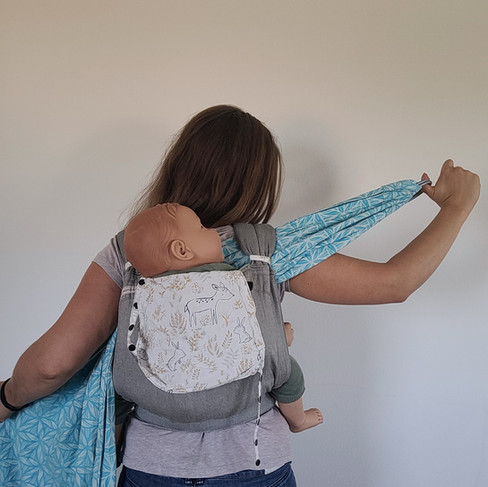 Du kannst natürlich auch alle anderen Tragesysteme verwenden und beliebig miteinander kombinieren. Fullbuckle und Wrapconversion ergänzen sich beispielsweise super (siehe Bild unten), du kannst aber auch zwei Halfbuckles oder einen Fullbuckle mit einem Onbuhimo kombinieren. Wähle hier die Systeme, die du auch einzeln gerne nutzt und mit denen du gut zurechtkommst, damit sich die Anschaffung wirklich lohnt.
